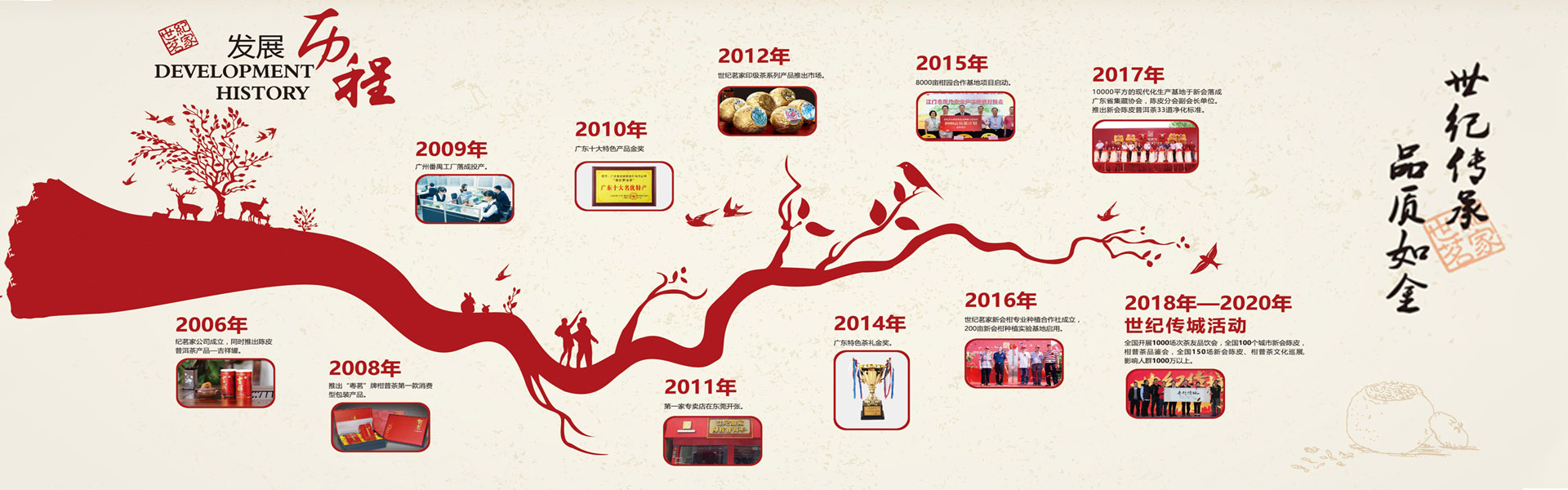 2006年,研发、试制新会陈皮相关的系列产品,推出陈皮普洱茶产品—吉祥罐。