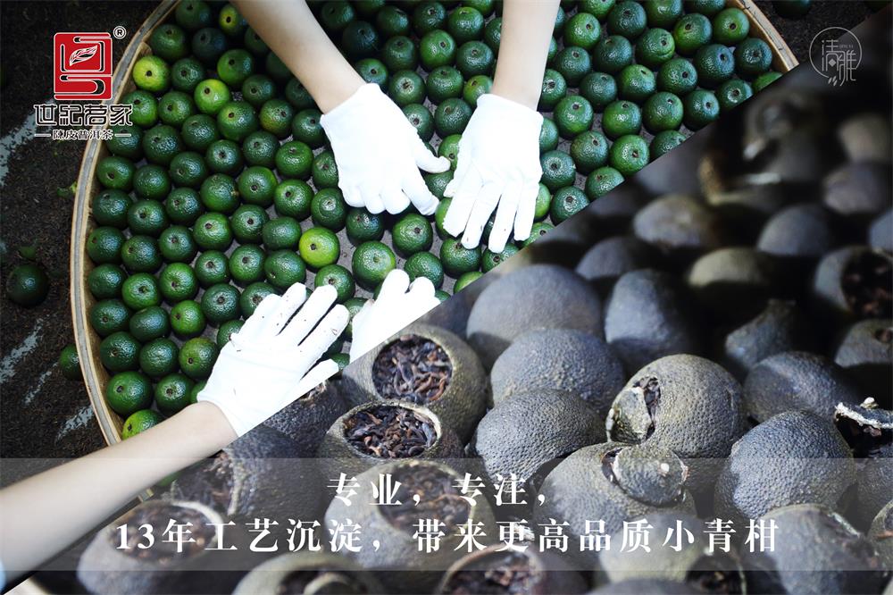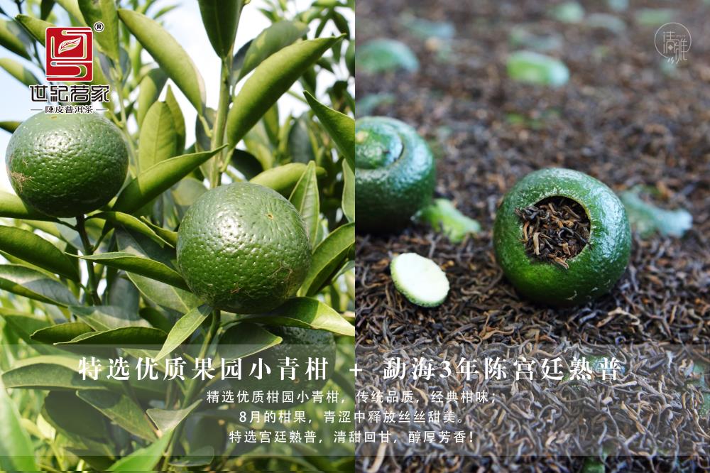 精选主产区优质柑园小青柑,传统品质,经典滋味;8月的柑果,青涩中释放丝丝甜美。宫廷熟普,芽叶细嫩,清甜回甘,醇厚芳香!经典配搭,品味一流!