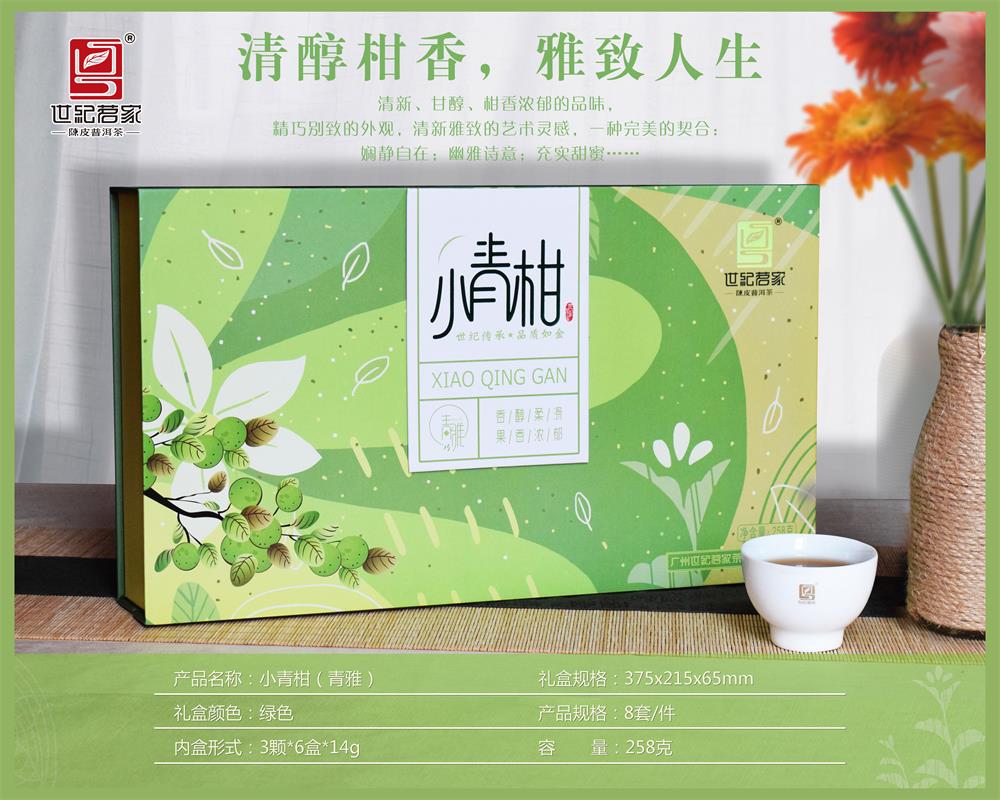 定位精品小青柑。精致礼盒,高档工艺,黄金尺寸,黄金容量,清新、时尚、富有内涵的设计创意;内含茶品特选主产区优质柑皮原料,工艺纯熟,呈现出一款精品小青柑应有的高级品味;适合高品味送礼,或高品味自用!