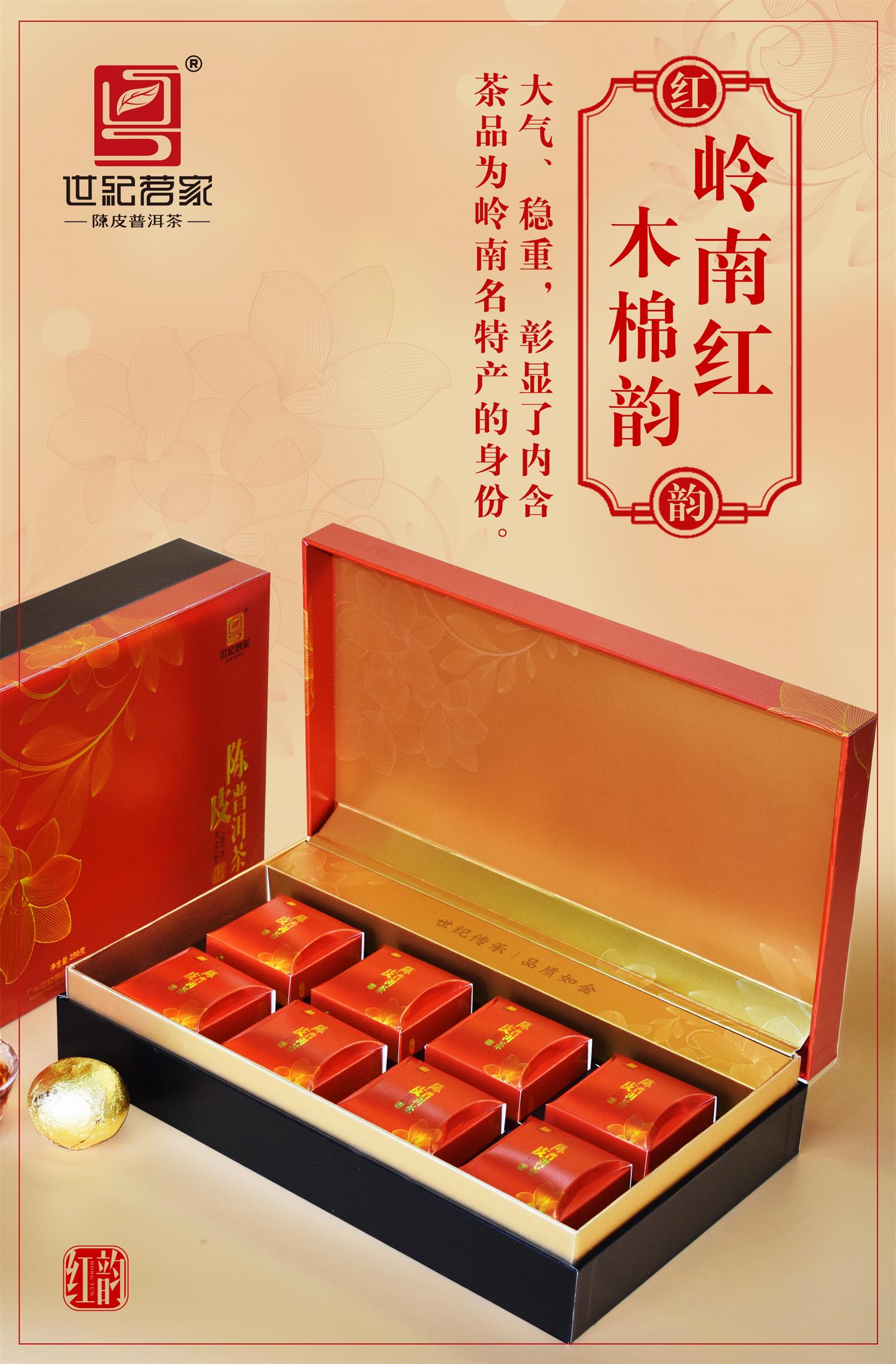 新会柑普茶风味独特且十分出色,养生价值更是众多茶类中的佼佼者,深受茶友喜爱,影响力与日俱增;礼盒设计富有内涵、岭南特色明显,内含茶品选料上乘,工艺精湛,品质一流,滋味经典,适中的价格定位,十分适合高品味自饮,更是日常或节庆送礼的极佳选择。