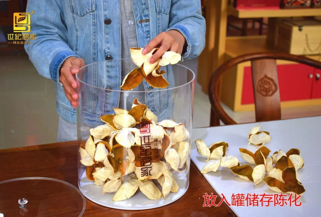 清朝汪昂《本草备要》记载:“广东新会陈皮为胜,陈久者良,故名陈皮” “十年一届基、种果用机肥。拣果考眼力,二三刀开皮。反皮看门路,晒皮趁天气。贮皮需有道,伺理比心机” 这是描述新会陈皮的常见的谚语或记载中的其中几句;前两句表明一个道理:新会陈皮存放越久越好,价值越高。第三句谚语是当地人几百年来总结出的陈皮生产经验,其中“贮皮需有道,伺理比心机”说明的是贮存陈皮需要讲究一定的技巧,平时要用心去管理;这个“伺”字,给人感觉就是要把陈皮当作宝贝一样伺候好。 综合而言,三句话整体表达的意思就是:新会陈皮存放足够久了是十分珍贵的,但要用心、有技巧去管理。 实际上,储存陈皮并不没有想像那么难,掌握以下规则即可! 新 会 陈 皮 储 存 方 法 储存环境 应当存放在通风、干爽、卫生的地方;应离地、离墙、离顶存放;切记远离厨房、浴室等湿气较重的地方。 贮存容器及日常打理 1. 较低年份的皮(一般5年以内): 透气为主 年份较低的皮,皮本身依然保留一定的水份,继续不断的挥发,需要用透气的容器储存,以保持干爽;否则容易回潮或引发烧皮、虫蛀。同时,陈皮的陈化是长时间、缓慢的一个过程,这个过程需要有氧有空气的环境,才有利于它的转化。 容器: 可选用纸箱、麻袋(注意新袋的气味)、布袋(棉布尤佳)等透气性较好的容器。其中,纸箱有一定的吸潮作用,可较好的保持干燥。 2. 较高年份的皮(一般5年以上): 密闭+适时透气 5年以上皮一般水份基本干透,皮的性状进入稳定期,应当进行密闭储存(但不是抽真空),避免过多受外界的影响,确保陈皮的稳定性,方便管理。但应注意:应当定期打开检查,进行透气、换气;如发现受潮变软或有虫蛀,则进行适当晾晒,以保持一定的干燥度。 容器: 可选用玻璃罐、陶罐、金属罐等。其中玻璃罐等透明的容器更方便观察。 特别时期注意储存 但每年有一些特别的季节阶段,新会陈皮的储存要特别注意,一旦疏忽,可以会造成损失:如部分地区会出现的回南天天气、春季潮湿天气或梅雨季节。这些时期空气中的湿度偏大,气温较高,物品容易发霉。 新会陈皮陈化需要一定的湿度,但储存环境湿度过大则会导致返潮,因返潮而变软,进而可能发霉变质或引发虫蛀。自己珍爱的陈皮特别是当心甘宝贝的高年份陈皮,因疏忽而受到破坏、损失,那一定十分心痛! 必须引起高度重视,但方法其实不难 1 在潮湿天气来临之前,及时将陈皮进行密闭(一直密闭的较高年份陈皮则免),使陈皮与外界进行隔绝,避免受外界潮湿空气影响。期间保持隔绝不要打开。 2 潮湿天气过后,选择晴朗的日期晒3、4个小时,恢复原来的储存方式。 3 如何保持陈皮的密封性?若用麻袋或纤维袋或纸箱保存陈皮的,建议在外面套密封透明袋子,可以隔绝水汽入侵的同时亦能增加袋内的氧气含量。 贮存量大,条件充分的,可使用抽湿机控制适当湿度。如工厂标准化陈储: ▲ jinnianhui.com新会陈皮恒温恒湿贮存车间