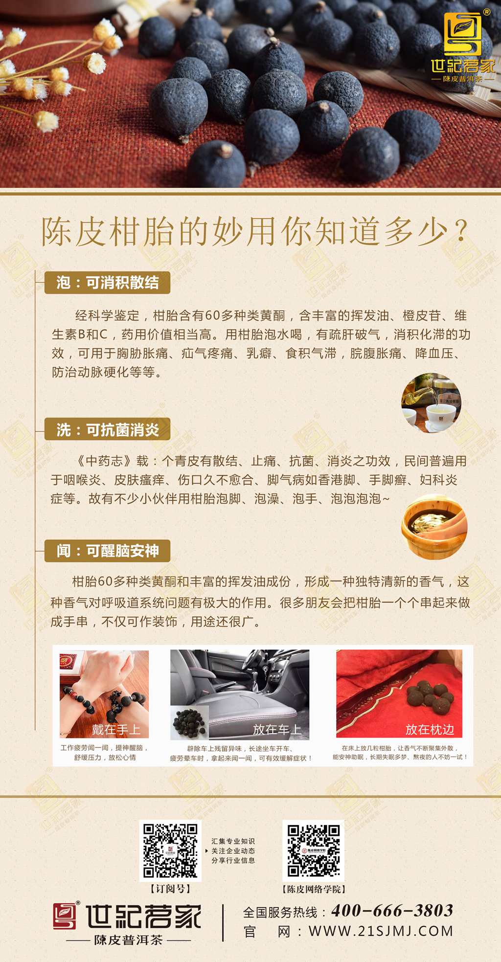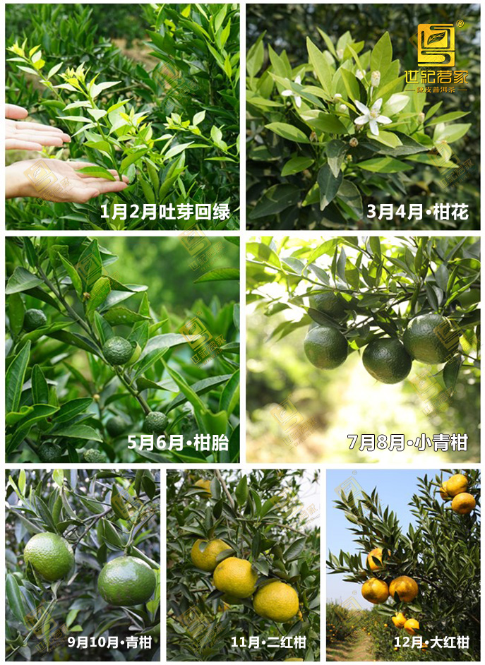 🔲 1月2月酝酿新机、吐芽回绿, 🔲 3月4月芬芳烂漫的柑花, 🔲 7月8月柑香醉人的小青柑, 🔲 9月10月芳香四溢的青皮, 🔲 11月香甜可口的二红皮, 🔲 12月醇香甜蜜的大红皮…… 5、6月呢?没有收获吗? 这个时令,似乎被人们忽略了,但其实也是大有收获。这个阶段,柑园其实为我们贡献着一种别具风味的美味,那就是“神奇”的柑胎! 新会柑胎,同样妙不可言,不宜错过!俗称“BB果”的陈皮柑胎,也许名声相比小青柑、陈皮等并没那么广为人知,但熟知她的人,都说她是神奇的。 小小的胎果,却蕴藏着大大的能量! 清、香、甘、淡,柑香袅袅,滋味奇特而迷人!近几年来柑胎作为代用茶并让人所熟知,柑胎茶汤色呈剔透的琥珀黄,那种淡淡、怡人的果香味,清新而独特!品一口甘甜清香,从口腔到喉咙再到胃的缓慢流淌,顿时神清气爽! 柑胎为柑果的初长阶段,果肉未长成,几无酸味,辛、苦成分含量相对低,滋味更显清香;同时柑胎刚由柑花转化而来,香气中带有淡淡的柑花味道。 与陈皮、小青柑、大红柑相比,柑胎别有一番风味,让你一品难忘! 相对小青柑、大红柑、陈皮而言,柑胎只是新会柑的另一个生理期,因此其基础成分的种类是一致的;柑胎的两大主要成分也是挥发油和黄酮类。甚至,柑胎的挥发油含量占比更高。 主要保健功效——同样是以理气健脾、调中和胃、消积化滞、燥湿化痰、抗氧化、软化心血管、抗炎、抗病毒等为主。 当遇消化不良时,可煮上一壶胎柑茶,消食解腻;在流感、咳嗽、发烧多发的季节,不时煮上一壶胎柑茶,理气健脾、燥湿化痰、疏肝润肺是极好的选择; 安神作用:柑胎的香气还可以养心安神。由于挥发油含量极高,柑胎香气明显,近闻可以提神开窍,降气止呕;放远处任由其自然散发幽幽香气,能够舒缓神经、调节情绪,帮助促进睡眠。 特别推荐人群:青柑(胎柑、小青柑、青柑)利肝胆,对于平时抽烟喝酒较多、熬夜或经常长时间操作电脑的人群来说,有疏肝理气、止咳化痰的作用。 怎样才是好的柑胎? 一、必须是生晒的 柑胎必须是生晒的,只有生晒的(一般在正常天气下晒足28天),才能留住绝大部分的挥发油等活性成份,才能更多保留其天然的香气滋味! 二、必须是果树上新鲜剪摘下来的 柑胎必须是果树上新鲜剪摘下来的,而不是落地果;落地果属于优胜劣汰的果,部分属于“问题果”,且掉落地面可能导致已经变质甚至局部腐烂。 三、不添加任何防腐剂和添加剂 必须是不添加任何防腐剂和添加剂的,以确保其安全性和原生态品质! 四、必须经过清洗、净化的标准化生产流程 必须经过清洗、净化的标准化生产流程,以最大化降低农残含量,保障品饮的安全性。 一、最美味的 -- 煮 用开水煲3-5分钟,待茶色现金黄色,并散发阵阵清香,即可饮用;500ML开水内放2至4粒,即可一天内重复煲饮。(煲之前先用沸水泡30秒,倒掉水) 个体稍小的柑胎,可煲至7、8分钟,味道会更佳;因为个体小的柑胎更坚硬,更耐煲! 二、好喝又方便的 -- 保温杯闷泡 300ml左右保温杯中加开水,放入1-2颗柑胎,盖好闷泡约10-15分钟即可饮用;一天内可重复泡 ;(闷泡之前先用沸水泡30秒润洗柑胎) 三、最简便的——盖碗或壶泡饮 也可像泡茶一样,直接用盖碗或壶冲泡,柑胎的果香和滋味缓缓浸出,出味会较慢但更耐泡。 小Tips 效果更佳的方式:柑胎十分坚硬,先用开水首泡3-5分钟,取出用专用卡位钳轻轻一夹,即可将柑胎果夹开,此时再煮或泡,即可品味更完美的柑果茶香! 这样的新会陈皮柑胎, 你喜欢吗?