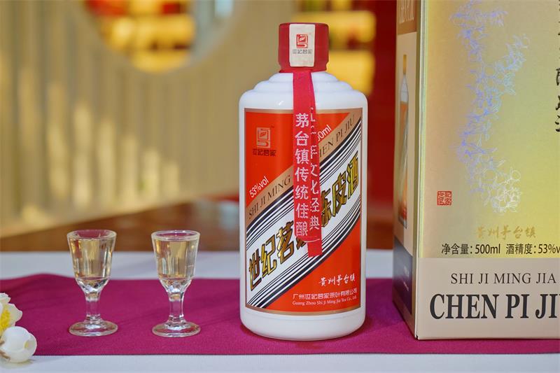 通过对各地酒友的广泛调查,结合制酒师傅长期的经验沉淀,世纪茗家新会陈皮酒选定的成酒度数为53度。53度的陈皮酒,口感极佳,南北通行,最具广泛性。可以说,酱香型新会陈皮酒的黄金度数为53度。