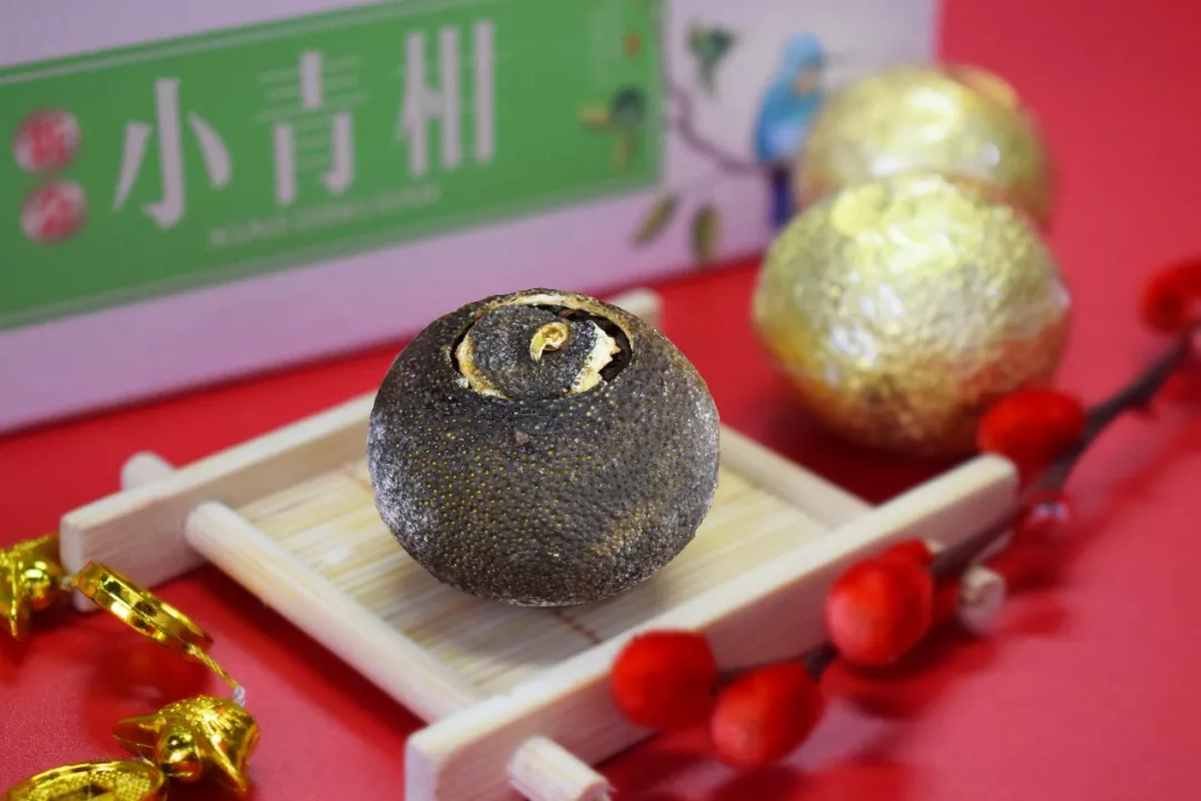 新会小青柑皮特有的馥郁香气与清新滋味,搭配云南勐海熟普的醇甜陈韵,融合出香气高扬、口感鲜爽醇甜的新会小青柑。精巧讨喜的颜值,时尚新颖的品饮口味,迅速成为茶桌上的受宠的“小心肝”,欢欢乐乐闹新年。
