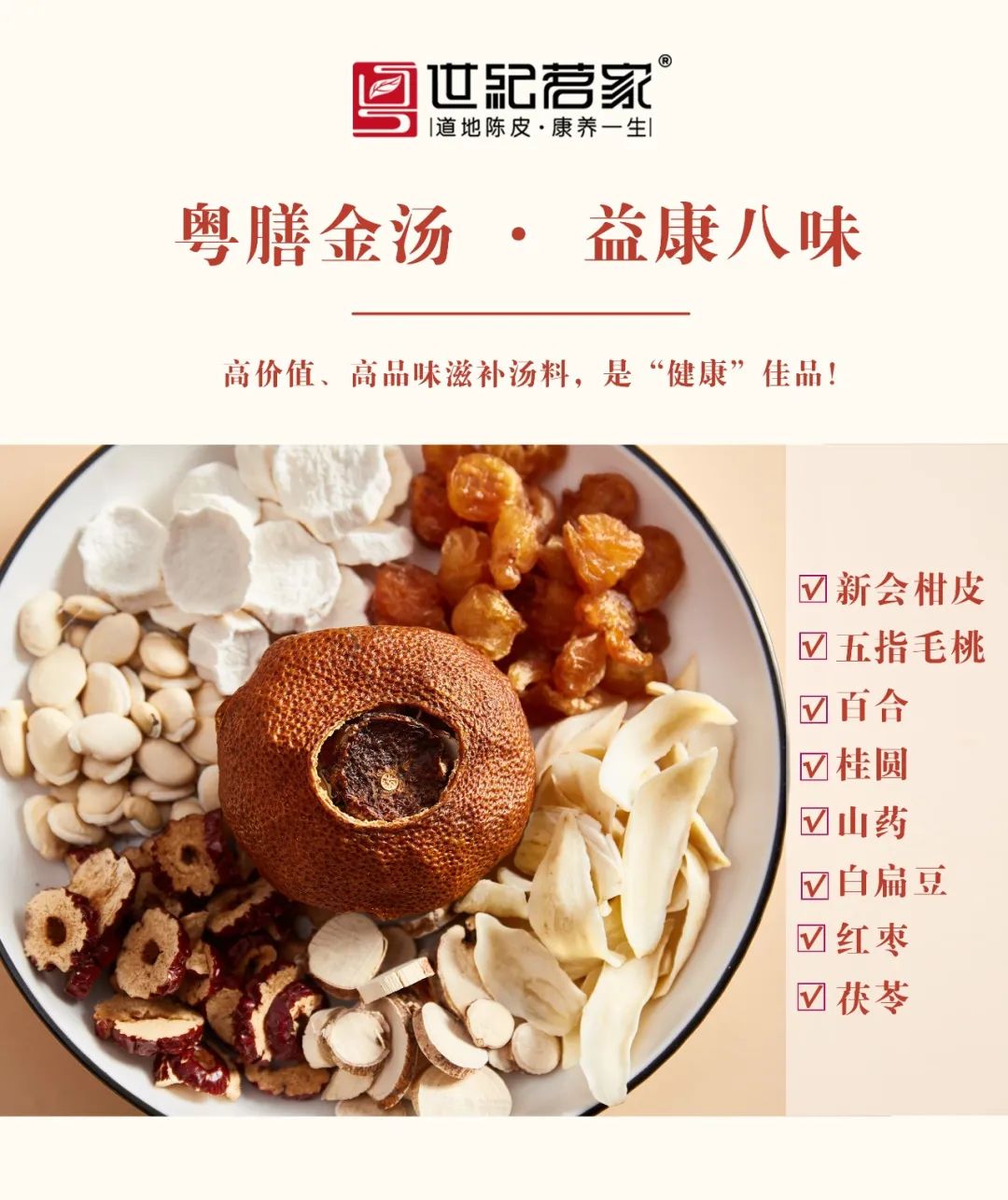 在新会陈皮700多年的历史中,人们广泛应用于日常膳食中,用以滋补身体,防病健身。尤其是广东人及海外华人,一早就将新会陈皮大量运用于药膳食中,使新会陈皮成为了海派保健文化的名片。
